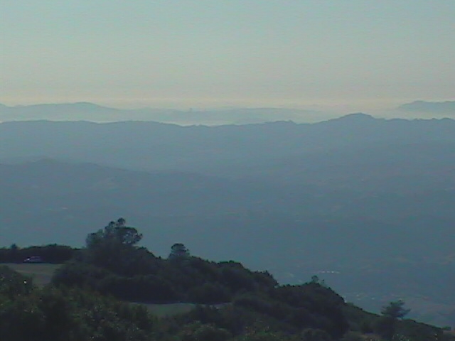 Even though I've lived in the Bay Area for a few years, I've never been up Mt. Diablo (3849 feet; 1166 metres). Considering that I was finally leaving (to accept a professorship at the University of Washington in Seattle), I decided to pay a visit to Mt. Diablo State Park. We drove up to the Juniper campground and from there, it was a short hike (about five miles round trip) to the top. It was definitely an amazing sight, featuring some breathtaking views of the whole bay area and the area around Walnut Creek and Contra Costa county. This is possible because there's very little to block the view around the mountain. Apparently, when conditions are good, visitors can see over 40,000 square miles in at least 35 of California's 58 counties. I could see the Golden Gate Bridge and the city of San Francisco, but the smog did make it hard to discern where Yosemite National Park or Mt. Lassen were: