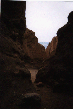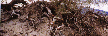 Death Valley is marked by large gorges cut due to the flow of either lava or water, sand dunes, and some amazing adapations of living organisms to this climate. The most exhilarating experience was when I climbed down the Ubehebe crater (going down was really fast---coming back was quite a workout!).